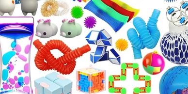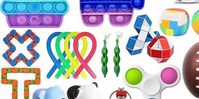 A mix of tactile toys perfect for calming hands and improving focus during quiet play or homework.